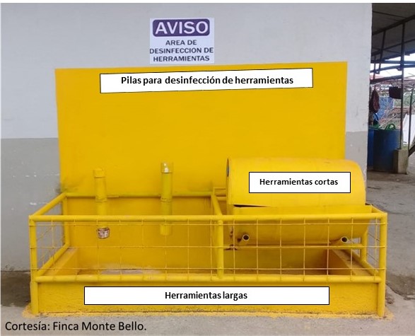 Para ello, recuerde que todas las herramientas que se usan en campo deben ser desinfectadas antes de iniciar la jornada, así como al finalizarla. Asimismo, estas no deben compartirse entre fincas.