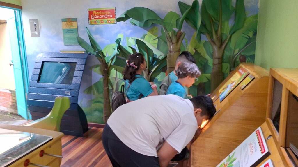 Por su parte, Jaden Quirós, estudiante de 2° grado, expresó su entusiasmo de ver representada en una sala del Museo la labor que con orgullo realizan su papá y su abuela: “Lo que he disfrutado más es lo de la bananera, porque me gusta aprender sobre el trabajo de mi papá”.